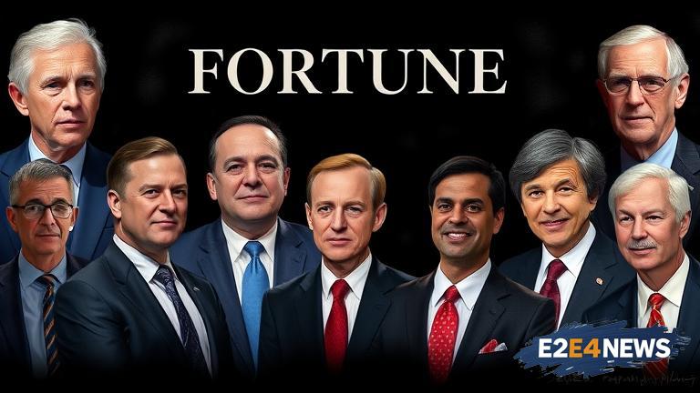 The prestigious Fortune 100 list has been unveiled, showcasing the most influential business leaders of 2025. This year’s list features a diverse range of individuals, from tech moguls to financial giants, who are driving innovation and growth in their respective industries. The rankings are based on a variety of factors, including the individual’s impact on their company, industry, and the global economy. The list is dominated by CEOs and founders of major corporations, but also includes entrepreneurs, investors, and policymakers who are making a significant impact on the business world. The top 10 includes familiar names such as Elon Musk, Jeff Bezos, and Bill Gates, as well as newcomers like Mary Barra and Sundar Pichai. The list also highlights the growing importance of technology and e-commerce, with many of the top ranked individuals coming from these sectors. The Fortune 100 list is widely regarded as a benchmark of success and influence in the business world, and is closely watched by investors, executives, and policymakers. The list is compiled by a team of Fortune editors and reporters, who conduct extensive research and interviews to determine the rankings. The criteria for selection include the individual’s leadership, innovation, and impact on their industry and the global economy. The list also takes into account the individual’s reputation, network, and influence within their industry and beyond. The 2025 list features a number of notable trends, including the growing representation of women and minorities, as well as the increasing importance of sustainability and social responsibility. Many of the individuals on the list are also recognized for their philanthropic efforts, with several having pledged to give away significant portions of their wealth during their lifetimes. The Fortune 100 list is not just a recognition of individual achievement, but also a reflection of the broader trends and shifts in the global economy. As the business landscape continues to evolve, the list provides a unique snapshot of the people and companies that are shaping the future of industry and commerce. The list is also a reminder of the significant challenges facing businesses and leaders today, from climate change to economic inequality. Despite these challenges, the individuals on the Fortune 100 list are driving innovation and growth, and are helping to create a more sustainable and equitable future for all. The full list of the 2025 Fortune 100 most powerful people in business can be found on the Fortune website, along with profiles and interviews with many of the individuals featured. The list is a must-read for anyone interested in business, economics, and leadership, and provides a unique insight into the people and companies that are shaping the world of tomorrow. With its diverse range of individuals and industries, the Fortune 100 list is a testament to the power of innovation and entrepreneurship, and a reminder that business can be a force for good in the world. The list also highlights the importance of collaboration and partnership, with many of the individuals featured working together to address common challenges and create new opportunities. As the global economy continues to evolve, the Fortune 100 list will remain a key benchmark of success and influence, and a reminder of the significant impact that business leaders can have on the world. The 2025 list is a celebration of the achievements of these individuals, and a recognition of the significant contributions they are making to their industries and the global economy. The list is also a call to action, encouraging business leaders to continue to innovate, take risks, and push the boundaries of what is possible. By doing so, they can help to create a more sustainable, equitable, and prosperous future for all.