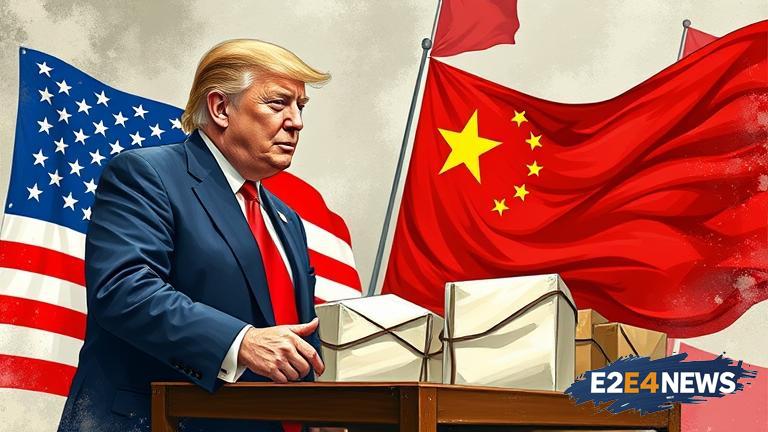 The ongoing trade tensions between the US and China have reached a new level of intensity, with President Trump demanding that China supply the US with essential goods. This move has sparked concerns over the potential consequences for global economic stability. The US has been seeking to reduce its reliance on Chinese imports, and Trump’s latest demand is seen as a significant escalation of the trade war. China, on the other hand, has been seeking to increase its exports to the US, and has offered to buy more American goods. However, the US has been skeptical of China’s intentions, and has imposed tariffs on a wide range of Chinese imports. The trade war has already had significant consequences for both countries, with the US imposing tariffs on over $360 billion worth of Chinese goods, and China retaliating with tariffs on over $110 billion worth of American goods. The trade tensions have also had a significant impact on the global economy, with many countries seeking to avoid getting caught in the crossfire. The International Monetary Fund (IMF) has warned that the trade war could have significant consequences for global economic growth, and has urged both countries to seek a resolution to the dispute. Despite the tensions, both countries have been seeking to negotiate a trade deal, with talks between US and Chinese officials ongoing. However, the negotiations have been slow-going, and it remains to be seen whether a deal can be reached. The US has been seeking to address a range of issues, including China’s trade practices, intellectual property theft, and forced technology transfer. China, on the other hand, has been seeking to protect its own economic interests, and has been resistant to making significant concessions. The trade war has also had significant consequences for American businesses, with many companies seeking to diversify their supply chains and avoid reliance on Chinese imports. The US Chamber of Commerce has warned that the trade war could have significant consequences for American jobs and economic growth, and has urged the administration to seek a resolution to the dispute. Despite the challenges, many experts believe that a trade deal between the US and China is still possible, and that both countries have a significant incentive to reach an agreement. The trade war has also had significant consequences for the global economy, with many countries seeking to avoid getting caught in the crossfire. The European Union, for example, has been seeking to increase its trade with both the US and China, and has warned that the trade war could have significant consequences for global economic stability. The trade war has also had significant consequences for the US economy, with many experts warning that it could have significant consequences for American jobs and economic growth. The Federal Reserve has warned that the trade war could have significant consequences for the US economy, and has urged the administration to seek a resolution to the dispute. The trade war has also had significant consequences for the Chinese economy, with many experts warning that it could have significant consequences for Chinese economic growth. The Chinese government has been seeking to stimulate the economy, and has announced a range of measures to support economic growth. However, the trade war remains a significant challenge for the Chinese economy, and it remains to be seen whether the government can successfully navigate the dispute. The trade war has also had significant consequences for the global trade system, with many experts warning that it could have significant consequences for the rules-based system. The World Trade Organization (WTO) has warned that the trade war could have significant consequences for the global trade system, and has urged both countries to seek a resolution to the dispute. The trade war has also had significant consequences for the US-China relationship, with many experts warning that it could have significant consequences for the long-term relationship between the two countries. The US and China have a complex and multifaceted relationship, with significant economic, strategic, and cultural ties. However, the trade war has put a significant strain on the relationship, and it remains to be seen whether the two countries can successfully navigate the dispute.