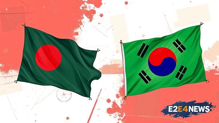 Bangladesh and South Korea have been engaged in discussions to establish a strategic partnership, aiming to enhance their economic and diplomatic relations. The two countries have identified potential areas of cooperation, including trade, investment, and technology. Bangladesh has been seeking to diversify its export markets and attract foreign investment, while South Korea has been looking to expand its presence in the Southeast Asian region. The strategic partnership is expected to provide a framework for cooperation in areas such as infrastructure development, energy, and agriculture. Bangladesh has expressed interest in learning from South Korea’s experience in economic development and industrialization. The two countries have also discussed the possibility of cooperation in the defense sector, including the procurement of military equipment and technology. South Korea has been a significant donor to Bangladesh, providing assistance in areas such as healthcare, education, and disaster management. The strategic partnership is also expected to facilitate people-to-people exchanges, including cultural and educational exchanges. Bangladesh has been seeking to increase its exports to South Korea, particularly in the areas of textiles, leather goods, and agricultural products. South Korea has been interested in investing in Bangladesh’s infrastructure sector, including the construction of roads, bridges, and ports. The two countries have also discussed the possibility of cooperation in the area of information technology, including the development of software and IT services. The strategic partnership is expected to provide a boost to Bangladesh’s economy, which has been growing rapidly in recent years. The partnership is also expected to enhance regional stability and security, as both countries are committed to promoting peace and prosperity in the region. Bangladesh and South Korea have a long history of diplomatic relations, dating back to 1973. The two countries have been cooperating in various areas, including trade, investment, and development assistance. The strategic partnership is expected to take the bilateral relationship to a new level, with a focus on mutual benefit and cooperation. The partnership is also expected to facilitate the exchange of ideas and expertise, particularly in areas such as economic development, technology, and innovation. Bangladesh has been seeking to learn from South Korea’s experience in areas such as industrialization, urbanization, and human resource development. The strategic partnership is expected to provide a framework for cooperation in areas such as climate change, disaster management, and sustainable development. The two countries have also discussed the possibility of cooperation in the area of regional and international organizations, including the United Nations and the Association of Southeast Asian Nations (ASEAN). The strategic partnership is expected to enhance the visibility and profile of Bangladesh and South Korea in the regional and international arena. Overall, the strategic partnership between Bangladesh and South Korea is expected to have a positive impact on the economy, politics, and society of both countries, and to contribute to regional stability and prosperity.