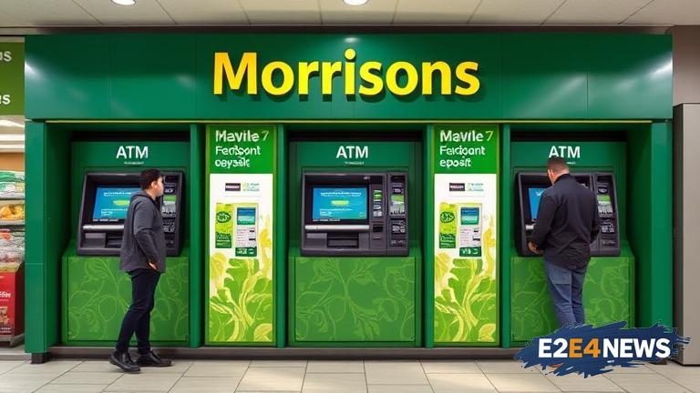 In a groundbreaking move, Morrisons, one of the UK’s leading retailers, has launched the country’s largest non-bank cash deposit ATM network. This innovative initiative is set to transform the retail banking landscape, providing customers with unparalleled convenience and accessibility. The new network, which comprises over 400 cash deposit machines, will enable customers to deposit cash into their accounts at any time, without the need to visit a traditional bank branch. This development is a significant milestone for Morrisons, which has been at the forefront of retail innovation in the UK. The company’s commitment to providing exceptional customer service has led to the creation of this cutting-edge network, which is expected to benefit millions of customers across the country. The cash deposit ATMs will be located at Morrisons stores nationwide, making it easier for customers to manage their finances. The network will also provide a secure and reliable way for businesses to deposit cash, reducing the risk of theft and increasing efficiency. Furthermore, the launch of this network underscores Morrisons’ dedication to supporting local communities and promoting financial inclusion. By providing access to cash deposit facilities, the company is helping to bridge the gap between traditional banking services and the needs of modern consumers. The UK’s largest non-bank cash deposit ATM network is a testament to Morrisons’ innovative approach to retail banking and its commitment to delivering exceptional customer experiences. The network is expected to have a significant impact on the UK’s retail banking sector, driving growth and innovation in the industry. As the retail landscape continues to evolve, Morrisons is well-positioned to remain at the forefront of the industry, leveraging its expertise and resources to deliver cutting-edge services that meet the changing needs of consumers. The launch of the cash deposit ATM network is also expected to create new opportunities for businesses and individuals, providing a secure and convenient way to manage cash transactions. In addition, the network will help to reduce the burden on traditional bank branches, allowing them to focus on more complex financial services. The UK’s largest non-bank cash deposit ATM network is a significant development for the country’s financial sector, highlighting the importance of innovation and customer-centricity in driving growth and success. Morrisons’ commitment to delivering exceptional customer experiences has earned the company a reputation as a leader in the retail industry, and the launch of this network is expected to further reinforce this reputation. The company’s focus on innovation and customer service has also led to the development of other cutting-edge services, including online shopping and convenient payment options. As the UK’s retail banking sector continues to evolve, Morrisons is well-positioned to remain at the forefront of the industry, driving growth and innovation through its commitment to customer-centricity and innovation. The launch of the cash deposit ATM network is a significant milestone for the company, and is expected to have a lasting impact on the UK’s retail banking sector. In conclusion, the UK’s largest non-bank cash deposit ATM network is a groundbreaking development that is set to revolutionize the retail banking landscape. With its commitment to innovation and customer-centricity, Morrisons is leading the way in the UK’s retail industry, delivering exceptional customer experiences and driving growth and success. The company’s focus on financial inclusion and community support has also earned it a reputation as a responsible and caring business, dedicated to making a positive impact on the lives of its customers and the wider community. The launch of the cash deposit ATM network is a significant achievement for Morrisons, and is expected to have a lasting impact on the UK’s financial sector.