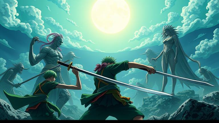 As Zoro approached the fortress, three warriors stepped out, clad in armor with designs reminiscent of ancient dragons. The leader smirked, brandishing a sword forged from a rare metal. “So, the legendary Zoro thinks he can challenge us?”