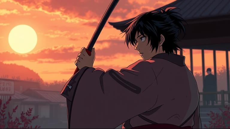 In the quiet village of Koshigaya, the sun hung low as the day began to fade. Himura Kenshin, now a wanderer with a heart burdened by shadows, sat under a blooming sakura tree. He watched children laugh and play, which filled him with an unsettling mixture of joy and sorrow.