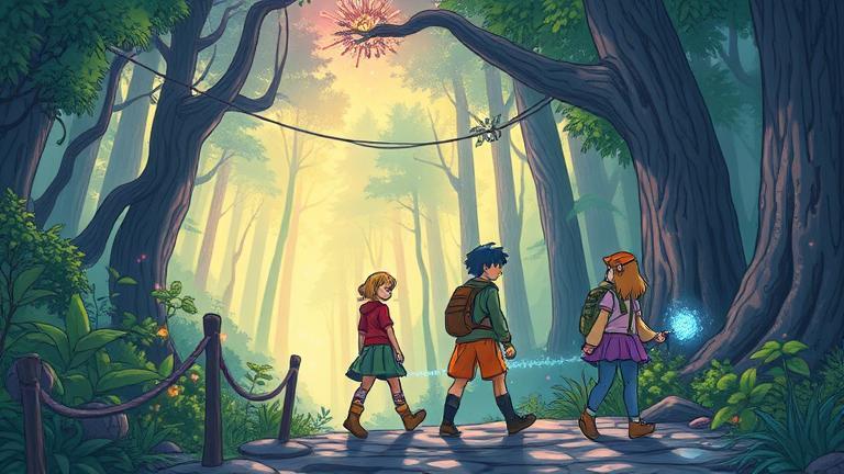 As the shimmer of the ethereal enchantment faded, Emily, Daniel, Lila, and Jack took a moment to revel in a newfound sense of freedom. Emily’s vibrant eyes reflected the light of the fading aura, and she said with enthusiasm, ‘It’s incredible! We felt suffocated in that darkness, and now we are unbound!’ Daniel leaned against a tree, a laugh escaping his lips, ‘Imagine if we’d never entered that grove; we’d be forever stuck in our own shadows.’ Lila glanced at the colorful blooms surrounding them, her heart racing with excitement. ‘This is magical—it feels as if I can breathe the colors in!’ Jack, ever the rational thinker, squinted into the distance. ‘Let’s not get ahead of ourselves. We still have no idea what’s out there. More magic could mean more chaos.’ Lila waved her hand dismissively, ‘Sometimes chaos leads to beautiful things. Let’s embrace it!’ With zeal and curiosity, they commenced their journey further along the shimmering trail. As they walked, the forest unfolded into a magical glade filled with twinkling fireflies swaying gracefully in the twilight. Daniel suddenly halted, his gaze steady. “Look! That clearing beckons us!” His finger pointed through glowing flowers that seemed alive with energy. Jack, distracted by the crisp designs etched into the forest floor, remarked, ‘This marks an energy grid; perhaps we are close to the source of the grove’s transformation.’ Just then, the tranquil air was pierced by an ominous growl. They turned to see a large, majestic wolf, its blue eyes sparkling with ancient wisdom. ‘Halt, travelers!’ the wolf announced. ‘I guard secrets profound. Only those who have embraced their past shall gain the wisdom of the grove.’ Lila’s heart pounded as she stepped forward. ‘We have fought our battles. Please, share your truths with us.’ Moved by their courage, the wolf nodded. ‘Very well. Follow me; adventure awaits for the brave of heart.’ They followed as the wolf led them into a vibrant realm of swirling colors and enchanting scents, where time seemed to bend. Emily’s eyes widened at a spectacle of intertwining and floating hues. ‘It’s a canvas of dreams!’ Suddenly, amidst the colors, they spotted the spirit beckoning Emily to follow. Jack hesitantly asked, ‘What can we do to bring forth these ideas? In a place like this, how do we start?’ With a gentle smile, the spirit replied, ‘The magic lies within you. Shape your world with imagination; let each brush of color represent hope, healing, and new beginnings.’ As if ignited by a fire, Lila raised her hands to mold the air around them. ‘Together, we can build a sanctuary, a refuge not just for us, but for others seeking solace.’ Daniel surveyed their imaginative playground with newfound determination. ‘We’ll craft it with history, allowing the profound wisdom of past souls to open doors for everyone.’ Music swelled, wrapping around the four of them, lulling some doubts into silence. Emily, exuberant and driven, let bright colors flow from her fingers onto a canvas she had conjured forth; she painted vivid landscapes of their dreams entwined. Jack joined in, intertwining signs that spoke of forgotten eras, legends, and unvisited paths. With each moment spent in creativity, laughter bubbled up between them, abolishing old fears that loomed in the corners of their minds. The watches of the wolf seemed approving, ensuring shadows would not return. Amidst their joyful collaboration, the spirit offered once more, ‘Remember, creation is an eternal dance; the grove will be your guide in this journey. Keep exploring, and never shy away from new stories.’ With exhilaration swelling, they stood ready to evolve this enchanting experience into creations of resilience, storytelling, and hope for the world. Having conquered the foreboding shadows of yesterday, they now stood united as architects of their reality, transformed by their journeys with hearts filled with unflagging optimism.
