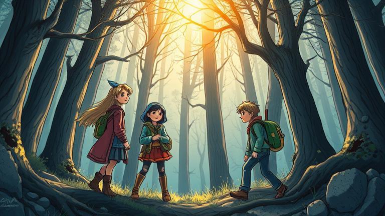 Supporting her friend, Mia added, “Let’s follow this feeling. What do we have to lose?” Courage bubbled within Jake, urging him forward, stating, “Right! What do we do?” They pressed on deeper into the woods, shadows playing on their faces as laughter infused the air with a bubbling joy.