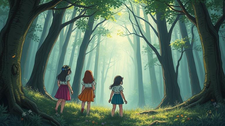 As the enchantment set in, the trio felt lighter, no longer weighed down by the burden of their secrets. The forest seemed to welcome them, vibrant colors emerging where darkness once lay.