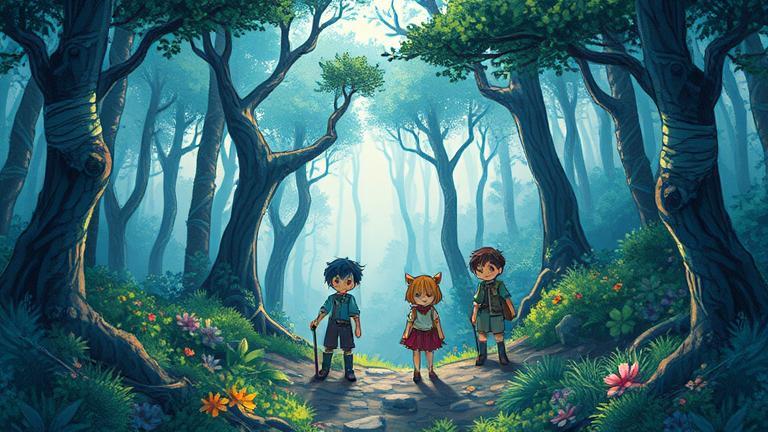 “Follow the stream until it ends at the Whispering Waterfall. Use all your wits and trust each other, and you will find your way.” The tree’s eyes glimmered with ancient wisdom.