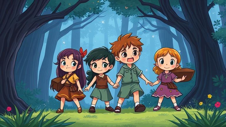 In the quaint village of Eldergrove, nestled at the edge of the mysterious Verdant Hollow forest, four friends—Lily, Peter, Sam, and Elara—found their lives intertwining with adventure and magic. The tranquility of their village was suddenly interrupted one afternoon when an ancient stone with mysterious carvings caught Lily’s eye. ‘What do you think it means?’ she pondered aloud, her fingers dancing over the stone’s aged surface.