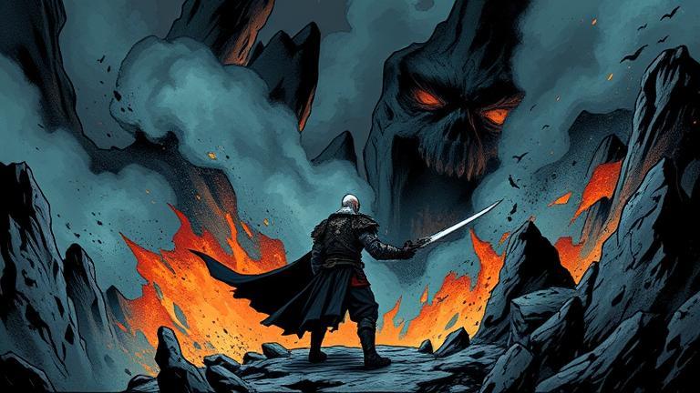 Gruffly, he started his way to the ominous cave. As he stepped inside, the darkness enveloped him. Images of his past—friends, foes, and lost companions—flickered in the depths of the shadows. His heart pulsed with anguish, each memory a dagger.
