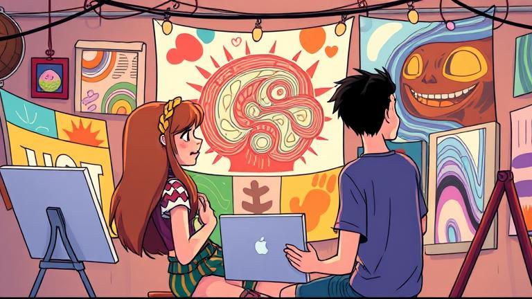 Leo leaned closer. ‘Then we tell them. Art is about connection. Each stroke tells a tale—a piece of our heart.’ He gestured at their wall of painted canvases, their colorful stories intertwining like roots of a great tree.
