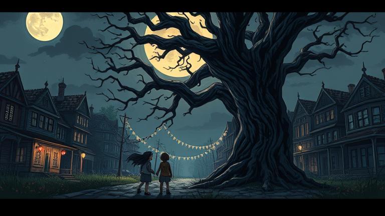 Mrs. Hargrove gasped, ‘A curse? You must be mistaken.’ But Alex chimed in, holding up the ancient text they had discovered. ‘It connects the tree to the tower, and each festival has seen horrific incidents since. The town deserves to know the truth!’ His voice shook slightly, yet held a paralyzing strength.