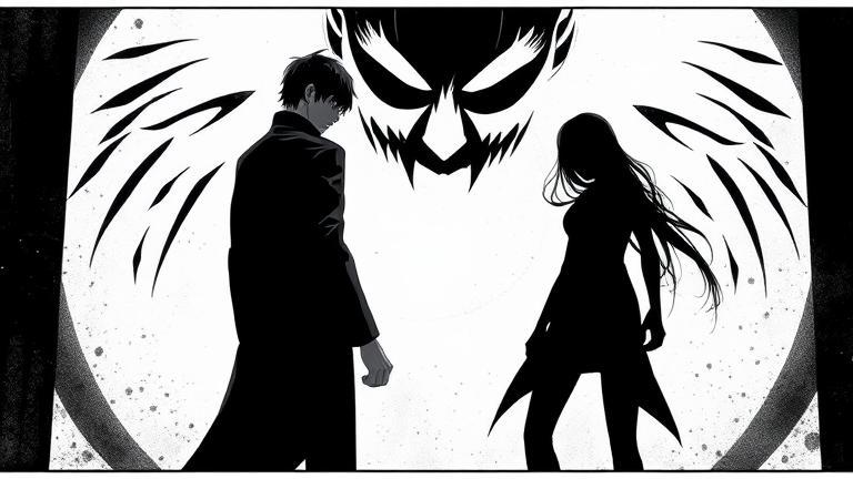 Just as L finished speaking, the room plunged into darkness—an unexpected blackout. Heart pounding, he glanced nervously at the windows while shadows emerged from every corner, twisting into distorted shapes reminiscent of haunting memories. ‘You see,’ a voice thundered from nowhere, ‘the shadows have come. You are about to witness the truth—perhaps once and for all.’