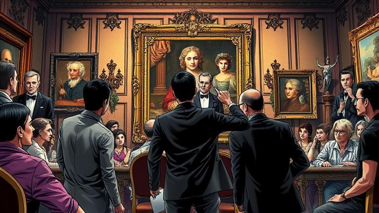 Vague whispers of recognition followed her. “Is that Sarah? What is she doing here?” Watching eyes greeted her presence. Ignoring them, she approached a familiar face—Theresa, a smuggler with ties to the art underworld.\n