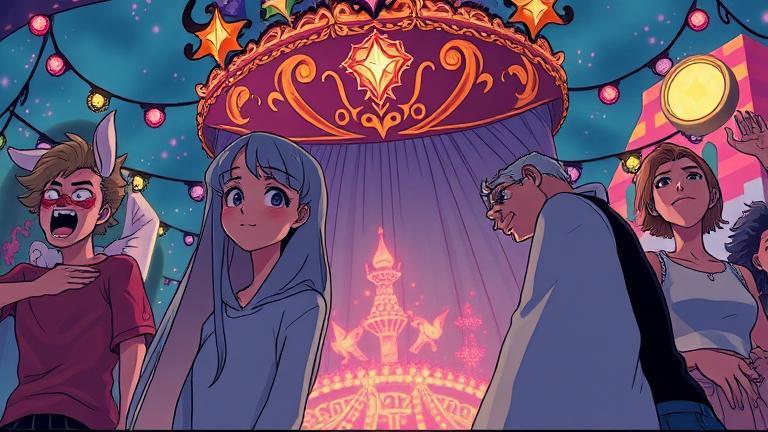 Once freed from the booth, they found new rides spinning with endless possibilities, laughter echoing through the carnival galaxy as their insecurities lightened.