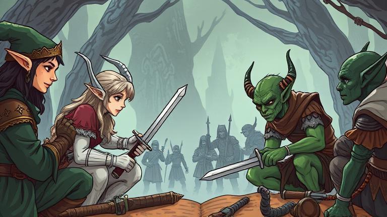 As the first light of dawn tiptoed through the Whispering Woods, Elara stood silently, her heart pulsating with the thrill of victory yet heavy with the weight of what lay ahead. ‘We might have pushed Nocturn back, but that was merely the opening act,’ she whispered to Faelan, who, lost in thought, watched the shadows retreat. Suddenly, Grath appeared, his goblin warriors milling around him, emboldened by their recent triumph.