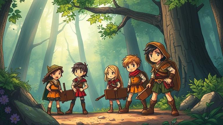 The sun filtered through the leaves of the enchanted grove, illuminating the ancient stones that wrapped around it like a protective embrace. Max, a curious teenager with a knack for adventure, peered at a shimmering light in the distance. ‘Hey, everyone, do you see that?’ he called out to his friends—Lila, an aspiring artist, and Theo, a quiet, bookish boy who adored nature. ‘I think we should check it out!’