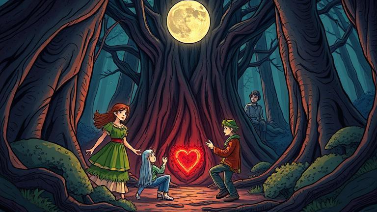 As Clara, Theo, Jarek, Lira, and Nyra stepped into the glowing chamber, the air buzzed with unspent magic. Shadows from their recent battle flickered at the edges of the radiant light, whispering promises of a greater threat yet to come. The backdrop glimmered with surreal blossoms and vibrant foliage that pulsed in tandem with the rhythm of their heartbeats. ‘We need to stay together,’ Clara reminded the group, her voice steady yet anxious. The chambers echoed the potential of youth mixed with the lingering weight of destiny. In the center of the chamber stood a pedestal fashioned from ancient vines, its surface crystalline and shining. ‘This is where the heart should be,’ Nyra explained, her emerald eyes scanning the surroundings. But where the Heart once pulsed with life seemed to be a fragmentation, a core that needed nurturing. Clara stepped closer. ‘What if we were meant to restore it rather than take it?’ she pondered aloud, aware of the heavy expectations lying upon them. Jarek nodded thoughtfully, brushing his hand across the pedestal. ‘Perhaps it requires more than brute strength; maybe it demands a return to balance.’ Just then, a soft laughter echoed through the chamber. They whirled around to find an ethereal figure, a Green Spirit of the forest, materializing before them like wisps of foliage intertwined with mist. ‘Ah, the brave kindred! Not merely seekers but defenders of balance,’ it welcomed, voice like a serene breeze. ‘But tell me, what will you sacrifice to ignite the Heart’s true potential?’ Lira strummed her lute softly, sensing the tension. ‘I’ll give you a song that carries our struggles, our fears, and our joys. Music is our truth.’ ‘And I shall share the stories of the brave,’ Theo resolved, stepping forward with newfound confidence. ‘My words can etch your history in the hearts of many!’ The Green Spirit sighed, a melody of appreciation woven within it. ‘And what of you, Jarek?’ Lira inquired. In response, Jarek unlocked the warmth of his fierce spirit. ‘I will offer my undying loyalty. Should danger arise again, I will protect this unity.’ Nyra’s dimming glow momentarily flared at the mention of loyalty. ‘And you, Clara? The initiator, the heart of all this potential?’ she urged softly. Clara hesitated, panic flickering within her. But she quickly compounded her fear with resolve. ‘I will harvest the lessons from this journey, bearing them within me so that our harmony is preserved eternally.’ As her vow resounded with shimmering light, the ambience shifted, grasping the solemnity of their declarations. The Green Spirit raised its translucent arms, channeling the combination of their offerings towards the cracked Heart above. Soft winds swirled in the chamber, merging all contributions into a ball of radiant energy, weaving music, stories, loyalty, and wisdom together. ‘Then let us rekindle what was lost!’ the spirit proclaimed, unleashing tendrils of vibrant power to envelop the broken heart. Clara stepped back, watching in awe as energies warped and expanded, releasing twinkling sparks that rejuvenated the echoes of the past. The Heart surged with newfound vibrancy, a grand ambient glow illuminating the entire chamber, shaking the very foundation of the grove above. Sensing a tangible shift, shadows once quivering at the corners flared in a burst of ferocity, snapping back into existence. ‘Foolish defenders! You think you can harmonize with the Heart? It belongs to despair!’ echoed the leading shadow, a dark figure with claws elongated and glorious hatred in its gaze. Jarek instinctively placed himself before Clara, blade drawn and grip steady. ‘We won’t allow you to harm or taint this creation!’ ‘We wield more than strength now!’ Clara shouted, stepping beside Jarek. Lira, holding her lute, began a fervent melody interwoven with Clara’s voice. The resonance filled the chamber, rallying their hearts in rhythm, while Nyra poured protective energy into their resonance. Shadows bellowed and howled, trying to break through their collective presence. But fueled by devotion and unity, their light surged, banishing intangible fears enough to illuminate the realm outside. ‘Onward!’ cried Theo, drawing strength from the stories shared. ‘Together, we stand!’ Rejuvenated whispers from the woods surrounding aided their fight, easing Clara’s worries and reminding them of their bond. With a powerful series of harmonized notes, vivid brands of light coalesced, countering shadow manifestations as Clara summoned roots to entrap them. Each companion contributed, weaving through chaos to meld into a shield of brilliant hope until their adversaries finally dismantled. A final burst configure through Clara’s fingertips, encasing the shadows which shrieked, twisting into ephemeral wisps as daybreak returned to the forest. As the last glimmers conformed into dawn, the Hearts’ rejuvenation accentuated the soft song lingering, marking the brilliance of their collective strength. Exhausted yet accomplished, Clara and the rest discovered the echo of gratitude within them. Realizing now that the Heart was more than a treasure: it was a legacy they promised to cherish. ‘And this is only the beginning,’ she whispered, smiling at her companions, ‘Together, we shall protect the legacy of this forest.’ With that, they forged a pathway beyond fear, an ever-deepening story—a guardian tale resonating through the Whispering Woods and echoing throughout their shared journey into an unforeseen alliance with nature.