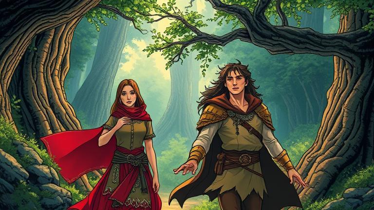 Kael placed a reassuring hand on her shoulder. ‘We face this together again, no fears can stop us.’ Determined, they ventured towards the forest once more, retracing their steps with trepidation.