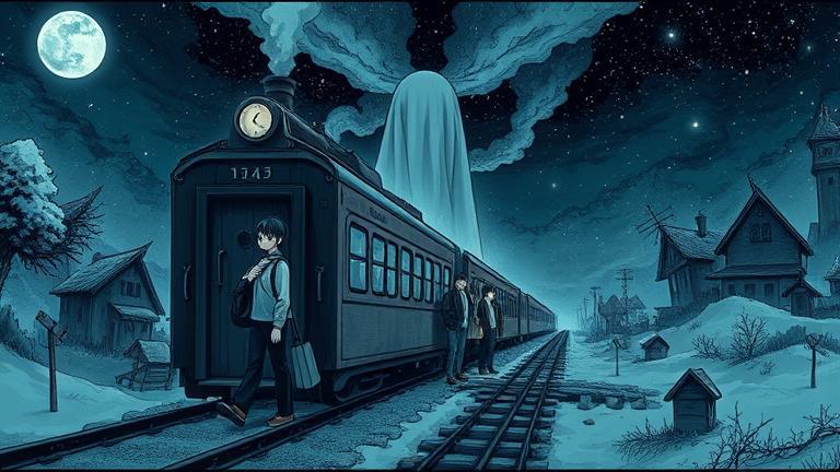 The train rattled along the tracks, its wheels screeching against the metal like an ominous warning. Outside, dark clouds loomed, clutching the moon in a silvery grip.