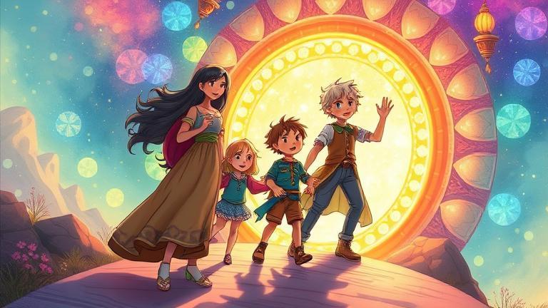 As dawn broke through the horizon, colors danced above them woven by stories both old and new. The mystical gallery pulsated with the echoes of lives now intertwined, forever enriched by their vibrant revival. United by purpose and armed with tales deeper than shadows, they moved onward, passing through another shimmering portal that whispered new possibilities, knowing they would meet more souls in need of rescue and expression—a thrilling promise of creative journeys ahead.