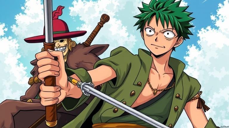 In a quiet coastal village, Roronoa Zoro found himself drawn to the sound of clashing steel. Curiosity piqued, he wandered toward the commotion and discovered a group of villagers crowded around a makeshift arena. ‘What’s happening here?’ Zoro grumbled, adjusting the swords on his hips, ready for any provocation. A young villager replied, ‘It’s a duel! The best swordsman in the land is challenging all to prove their mettle!’