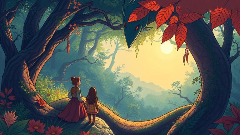The atmosphere thickened as the serpent landed nearby, glaring intensely. ‘You think mere stories can banish shadows? Speak louder truths, or the past remains shackled and forgotten!’ it thundered, demanding conviction.