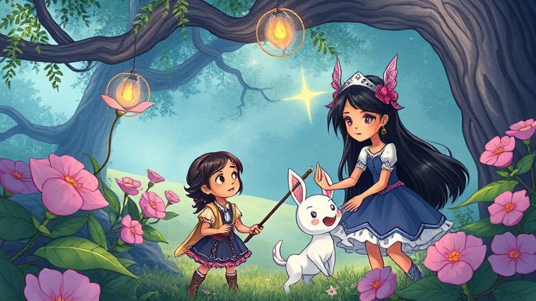 Pip nodded, his eyes sparkling with mischief. ‘Shall we see where it leads?’ Without waiting for the others, he pranced ahead. Mia took a deep breath, feeling Lila squeeze her hand for support. ‘Let’s do it together!’