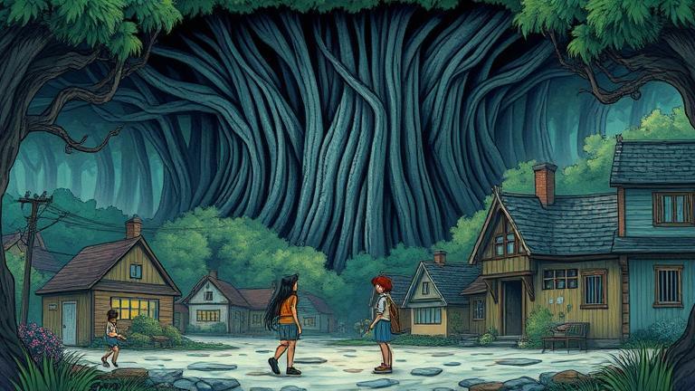 In the quaint town of Eldergrove, a persistent fog loomed over the Whispering Woods, a place spoken of in hushed tones. Four friends—Lila, Max, Ethan, and Aisha—decided on an adventurous weekend camping trip to unveil the mysteries of the enigmatic forest. As they set up their campsite, Lila remarked, ‘I hope we don’t find any more of those weird tree markings.’ Max chuckled, ‘Come on, those are just old stories meant to scare kids!’ Ethan peered into the darkening woods, ‘But what if there’s truth to them? You know, the stories about spirits protecting the forest.’ Aisha shivered, ‘Let’s just stick to roasting marshmallows and telling horror stories around the fire.’ Later that night, as they sat around the flickering flames, the shadows danced ominously. ‘What would you do if you stumbled upon a hidden village of forest spirits?’ Max asked, half-joking. ‘What if they needed our help?’ Aisha suggested, her eyes sparkling in the firelight. Suddenly, a whisper threaded through the trees, startling them all. ‘Help us…’ The friends exchanged glances, a mix of fear and curiosity painted across their faces.