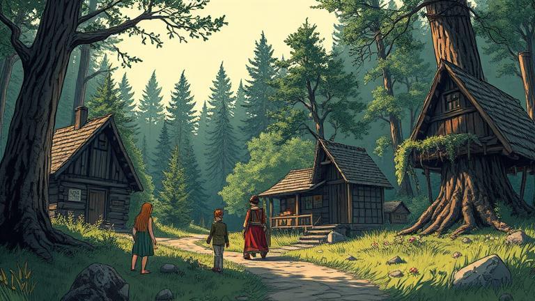 In the heart of the Whispering Hollow, a dense and ancient forest, an unusual commotion stirred. The villagers, tenders of their ancestral land, noticed an external presence—two strangers, Elyse and Jaxon, wandering through the village square, their faces etched with the remnants of journeys long and distant. The whispering of the trees could not drown out the murmurs of curiosity.