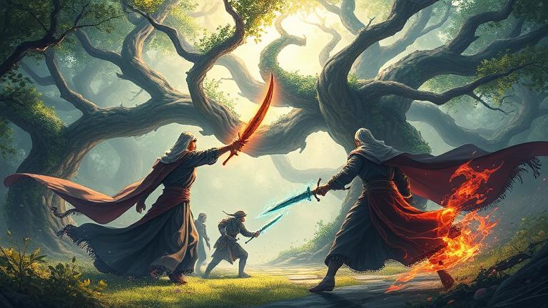 Gutai the newcomer watched, creeping skepticism now swelling into a gripping dread. Emerging from the mists was the Shade King, flanked by shadows; his voice a dark wind. ‘Naïve children,’ he crooned seductively. ‘Your stories flutter against the tempest. This night shall remind you!’ Elara felt a quiver in her palpable resolve, yet stood firm. ‘You speak of tempests, yet fail to understand our winds!’