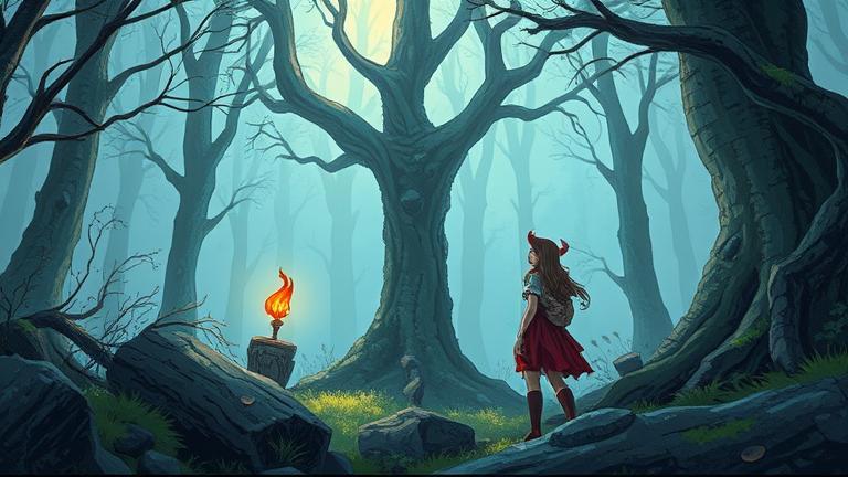 As they ventured deeper into the heart of the forest, the trees grew taller and the foliage thicker. Strange shadows flickered in the corners of their sight, and Flora thought she felt a watchful presence. “Do you feel that?” Flora whispered, gripping the Heartstone tightly.