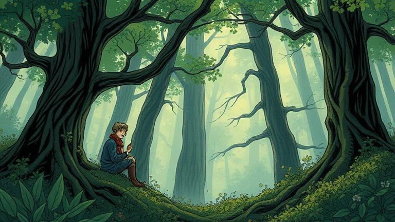 Ethan nodded, his artist’s spirit igniting anew. As they settled on a mossy log outside the grove, he pulled out his sketchbook. ‘Here goes nothing,’ he said, focusing on capturing the essence of the guardian.