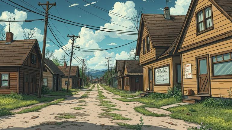 As they walked deeper into Hollow Creek, the wind whispered through the cracked windows of the old buildings. Sam glanced at the faded signs. ‘Look at this,’ he pointed, ‘The last date on this bakery sign is from 1984.’