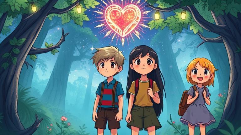 As twilight draped its soft robe over the Forgotten Forest, Elara led Sarah, Mark, Lucia, and Tom deeper into the woods, their hearts racing with anticipation. ‘First, we need to find the Echoing Lake,’ she instructed, a spark igniting in her eyes. ‘It’s where the stories are kept.’ The friends exchanged nervous glances, each step echoing with uncertainty. ‘What are we supposed to do at the lake?’ Lucia asked. ‘Each of you must drop a token of your childhood into the waters and recount a story,’ Elara replied confidently. Tom scratched his head, skepticism intertwined with curiosity. ‘What if we don’t have any tokens left?’ Elara spun around, her braid whipping through the air. ‘You do! It’s in your hearts; you just have to remember!’ A thick mist rolled in as they approached the tranquility of the Echoing Lake, its mirror-like surface shimmering beneath the moonlight. ‘Alright, I’ll go first,’ Sarah volunteered, reaching into her pocket to retrieve an old, crumpled photograph from their last adventure here as teenagers. ‘This was from our camping trip.’ She held the photograph close to her heart, breathing in the memories. ‘We almost set the tent on fire roasting marshmallows!’ Laughter erupted from her friends, filling the air with warmth. ‘I was so proud of that tent,’ Mark teased, ‘I mean, look where it got us!’ Each chuckle resounded, awakening forgotten echoes of joy. As Sarah dropped the photo into the lake, the water rippled radiantly, a gentle light surfacing in response. ‘Your turn, Lucia!’ Elara urged, her excitement infectious. ‘What do you have?’ Lucia fumbled through her bag, revealing a tiny music box, its notes unfinished yet alluring. ‘This was the first gift I ever got from my grandmother,’ she said softly. ‘She believed in the magic of every note. When we played by the lake, we would hum along, not knowing we were writing our own symphony.’ With a wistful sigh, she tossed the music box into the lake, and a cascade of luminescent whirlpools burst forth, pulsing with life. ‘It shines brighter with every story,’ Elara observed, her eyes sparkling. Mark stepped up next, twisting his fingers nervously. ‘I have something too,’ he declared, brandishing a weathered compass, its needle muddled by years. ‘We believed it would always lead us home. It was so silly, but it brings back memories of running away from the “forest monster.”’ The group erupted into laughter and sentimental sighs, remembering the adventures that ensued. The compass splashed into the water, igniting the lake like a thousand candles come to life. Tom was last, his hesitations manifesting in slight fidgets. ‘I… I don’t hold things like that, but I do have something to say,’ he finally said. ‘Every time I stood in this forest, I felt both terrified and exhilarated. The woods were our haven, and facing the ‘unknown’ made us stronger… But I’m still afraid.’ A wave of understanding washed over Sarah and Lucia, their empathy illuminating Tom’s vulnerability. Elara nodded, absorbing Tom’s manner, and learned his strength lay in honesty. ‘Your story is needed,’ she declared. Tom took a deep breath and tossed his empty hands over the water. ‘For every part of me that feared… I trust that it is what brought us together. I believe again.’ As the last sentence left his lips, the waters of the lake illuminated with a vivid energy that pulsed and danced, growing brighter than they had ever seen. Light enveloped them, heat blooming within their hearts. Elara beamed, ‘The heart is awakening! We’re not finished yet. We must venture to the Eldertree for the final blessing!’ The friends, seized by an unyielding energy, hustled through the beautiful mist, slipping and laughing, sharing silly as well as heartfelt stories about their forgotten dreams. Laughter echoed, mixing with whispers of hope and faith that rang louder than fear. Moments turned into hours, and deeper connections blossomed, shielding them from the encroaching shadows of doubt. Elara stopped under the whispering Eldertree, her hand pressed to its bark. In unison, the four friends merged their hands, bridging their cherished memories and stories to the ancient tree. Each thought sent currents of energy upwards, creating a surge that fed the tree’s roots and branches. The forest around them flourished in response, whirring with magic they thought long lost. ‘This life, this friendship, is what feeds the magic,’ Elara whispered, her eyes shimmering. ‘You did it! The Heart of the Forest has been rekindled. Together, you hold its pulse.’ The friends stood awed, fully aware of the burden lifted and the exploration still ahead. The forest welcomed new beginnings, stories forever entwined in magic reborn. There was adventure yet to come. The secret whispers of the forest would never be forgotten again.