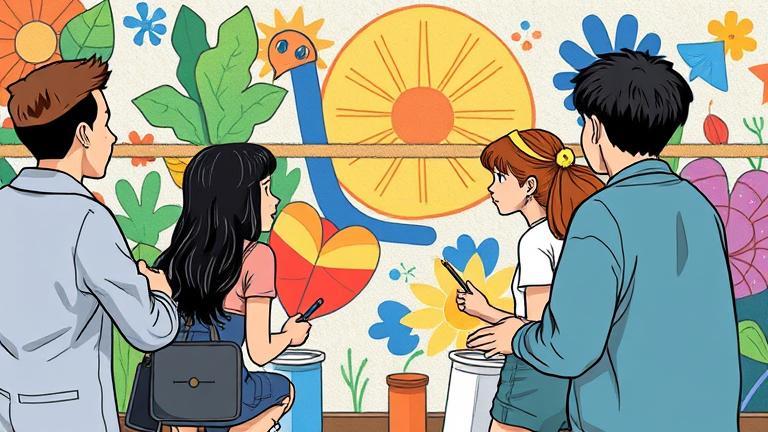 As twilight painted the sky, the mural radiated every hue of togetherness and understanding. Each character’s story was sewn into the layers of the mural. They stepped back, collectively feeling proud of the warmth emanating from their creation. Theo captured the sentiment perfectly when he commented, ‘This is more than paint; this is our narrative—unique yet intertwined.’ Time melted away as they painted until stars began to wink above. In the midst of this camaraderie, the art transformed into a reflection of their lives. Paramita, one of the teenagers, began to vocalize her thoughts: ‘You know, it’s incredible how just a few colors can spark conversations we never had before.’