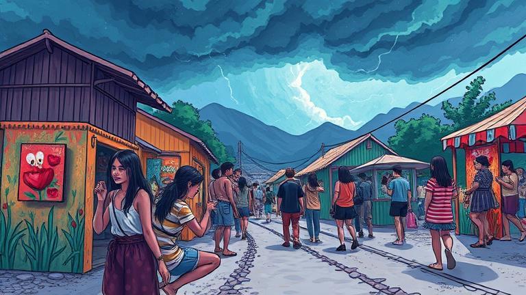 But just as the mural began to replicate the vibrant essence of Eldergrove, dark clouds crept over the festival, shadowing the joyous hearts. Leo’s spirit plummeted as he noticed the storm coming. “We must work quickly!” Raj shouted, urgency creeping into his tone. “We might just finish before it hits!” Panic fluttered uncontrollably, yet Leo reminded them, “We’ve created this together; our creativity will withstand any storm!” Inspired by his words, the team returned to their brushes, and the wind began to howl ominously.