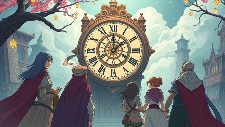 The sun filtered through the dense canopy of ancestral trees that enveloped Eldoria. As the people gathered around the beautifully intricate clock tower, its hands glimmered sparkles of light each time the chimes echoed through the serene square. Elara, a young artist with a crown of wildflowers in her hair, looked up at the clock with wonder. ‘What will it bring us today?’ she mused aloud to her friend Felix, a savvy merchant known for his swift tongue. ‘Maybe fortune, or a new inspiration,’ Felix replied with a wink, his eyes twinkling with mischief.