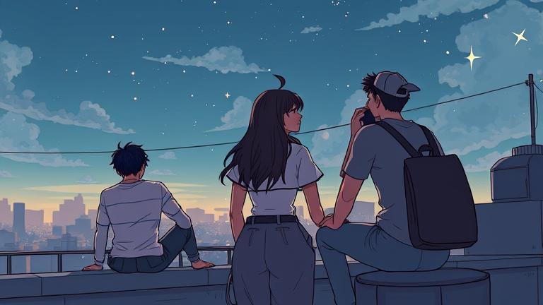 The new acquaintances climbed across and soon joined the circle, overflowing the rooftop with laughter and stories. The air vibrated with ideas as they discussed art, career shifts, and dreams woven from the chaos of their lives. Tim eagerly shared his ‘stranded astronaut’ tale, igniting ideas of travel and exploration. Meanwhile, Jenny unveiled sketches filled with color—a kaleidoscope of emotions waiting to dance on her canvas.