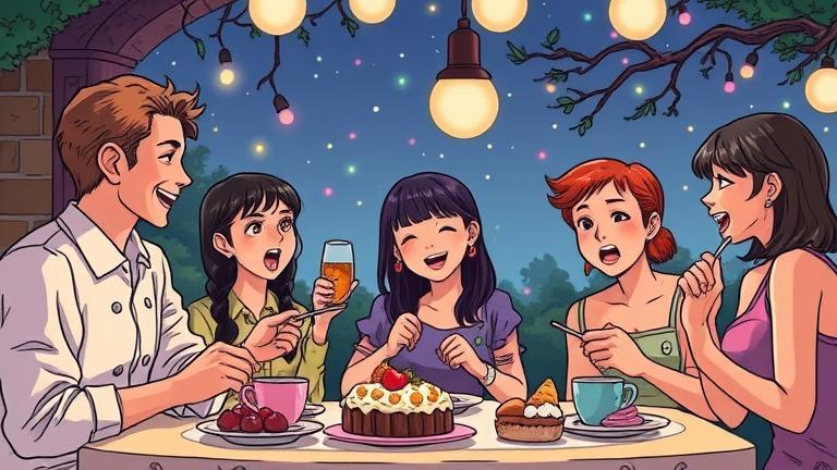 Then, Lucy raised her hand, ‘Vegetarian desserts could be interesting too! We can invite more friends without dietary restrictions.’ As ideas flowed like melted chocolate, someone shouted ‘Ice cream!’ prompting a montage of everyone’s favorite flavors echoing under the stars. ‘It’s settled!’ Tom declared. ‘Next year goes international!’