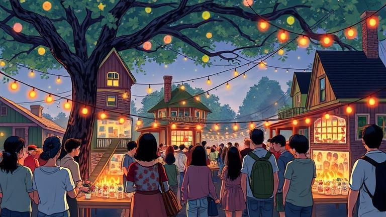 As the sun dipped below the horizon, casting a warm golden glow over the vibrant festival, the buzz of excitement was palpable. Lily stood on the makeshift stage, adorned in twinkling lights, inviting attendees to reveal their aspirations. “Who’s up for sharing their dreams?” she called. The crowd surged with energy, eager to participate. From the back, a bold figure stepped into the light—Max, his adventurous spirit evident in his tousled hair and determined stride. “I dream of a wind-powered car that could travel across the globe,” he declared, his conviction making the crowd erupt in applause. Laughter rang loose and mixed with skepticism, but every voice reverberated with encouragement. “I dream of creating a mural that tells the story of our community—a canvas that changes every year!” chimed in Sophie, a painter who flowed gracefully onto the stage in her eclectic clothes. Her passion ignited a whirlwind of excitement within the audience. Young Mira, observing in silence, finally found the courage to chime in softly, “I want to build a treehouse where kids from every neighborhood can gather and share stories.” Like a soft breeze, her words enfolded the space in warmth. “Bring that dream to life, Mira!” erupted David, a charismatic local musician, his guitar hanging comfortably on his shoulder. “Let’s turn dreams into actions. The next festival could be our launchpad!” The air thickened with scent and sound as conversations erupted. Max rallied the audience, his infectious energy sweeping through the crowd, “What if we teamed up?” he suggested excitedly, as the crowd gravitated toward collaboration. Each individual began clustering around shared dreams. “Let’s create groups!” encouraged Lily, enthusiasm bubbling in her chest, “Every dream deserves to flourish and become vibrant!” With a newfound purpose, friends and acquaintances rearranged themselves in small circles—artists, technologists, gardeners, each inspired to cross-pollinate ideas and skills. Emerging from a quiet corner, Etta, the grandmother with stories carved in her worn smile, sauntered to a gathering focusing on community gardens. “Dreams grow like seeds,” she shared sagely. “They require nutrients, time, and companionship… and it can begin with a simple plan!” The festival nocturne transformed into a medley of ambitions. From whimsical inventions to vibrant artistic expressions, each dream interwove into an ambitious tapestry. Under the gaze of a watchful moon, groups transformed ideas into sketches: Max scribbling blueprints, Sophie splashing watercolor thoughts onto paper napkins, and kids wandering amidst dreams, eyes sparkling like the stars above. At the heart of this creativity, Mira found sanctuary. As ink flowed from the tip of her pencil onto paper, she envisioned, “What if our treehouse reaches so high that we can see the stars?” An impromptu agreement echoed through her newfound friends with sheer excitement, weaving their aspirations tightly together. As hours melted into the night, stories mingled with laughter—a rich, interwoven fabric of hopes and memories. David’s guitar progressed into a gentle melody, signaling not merely a farewell, but a celebration of their desires and destinations. “Tonight marks a new beginning!” cried Lily, her eyes twinkling like starlight. “Let’s write our visions down, plan to meet next year, and keep nurturing our dreams!” Enthusiastic agreement filled the air—a collective promise. As festival-goers began their homeward paths, the trail shimmered like stardust behind them, awash with dreams full of potential. Celebrated and invigorated by collaboration, Mira rolled up her sketches and transformed her ideas into tangible actions. Inspired by Max’s plans, she welcomed neighbors to join her, shouting, “Let’s make the best community project ever!” as they gathered materials for their ambitious treehouse. Max unearthed a forgotten bicycle tire proposition to suspend the structure, showcasing an ingenious balance of fun and practicality. Sophie brought brushes of vivid color, splashing the streets with joy and expression, pumping life into their collective endeavors. The townspeople thrived as they mirrored one another’s sentiments, no longer just individuals but an interconnected force about to reshape their community. Excitement for the approaching festival loomed large, promising a reunion—a celebration defined by camaraderie, creativity, and shared hopes. They channeled every ounce of effort, each character intertwined with the narrative of community spirit rising higher, breathing presence into their future. Time rolled onward, and between fleeting moments, the essence of dreams lingered fondly, weaving through the remnants of starry nights, always urging them toward what lay beyond tomorrow’s horizon.