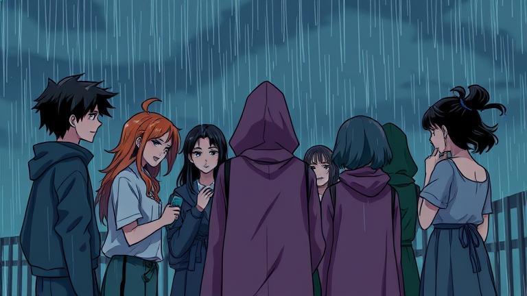 While the drumming rain played its uncertain rhythm, an idea began to form in the atmosphere. ‘What if we create a collective piece?’ Jake suggested, glancing from face to face. ‘One that tells our stories alike, under this very rain!’