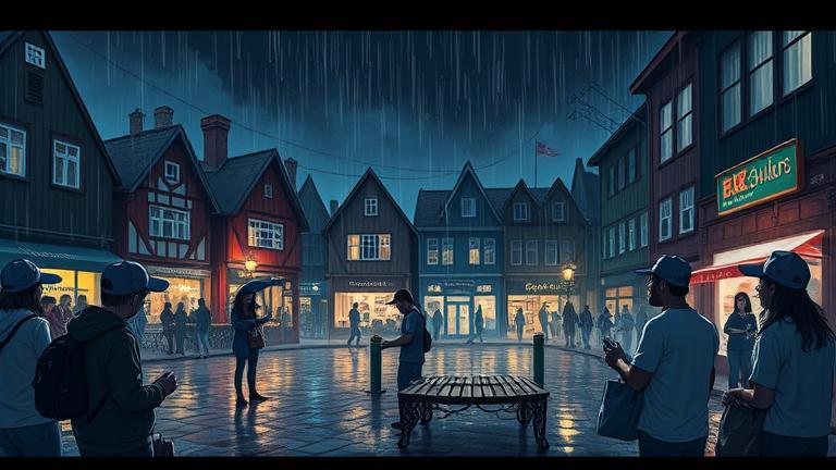 Under the fading light of day, the artists huddled together under the gazebo as the rain fell steadily. Their laughter echoed through the night as Lila strummed her guitar. ‘Can you feel it? The power of our voices?’ she yelled over the sound of the rain. Marcus nodded, his brush flicking paint as he captured the essence of their gathering. The canvas, much like the heaviness in the air, was alive with bold colors. ‘Each stroke we make is a part of us,’ he said, lost in his art.