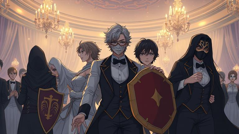 The leader of the masked attackers glimmered with malevolence; her piercing gaze looked as if it could see into the hearts of the fighters before her. ‘Your reckoning has come,’ she hissed, weaving dark tendrils around her.