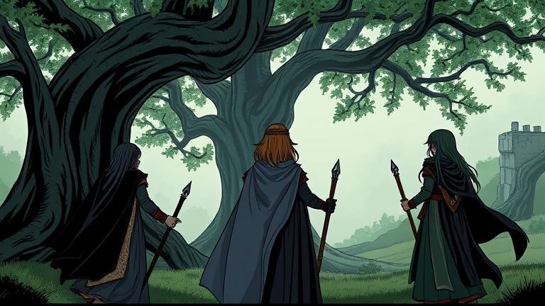 The wind danced through the branches as light filters returns, affirming the trio’s pact yet again: Together, connecting past to future, they craft waves of harmony meant to echo deeply through ages.