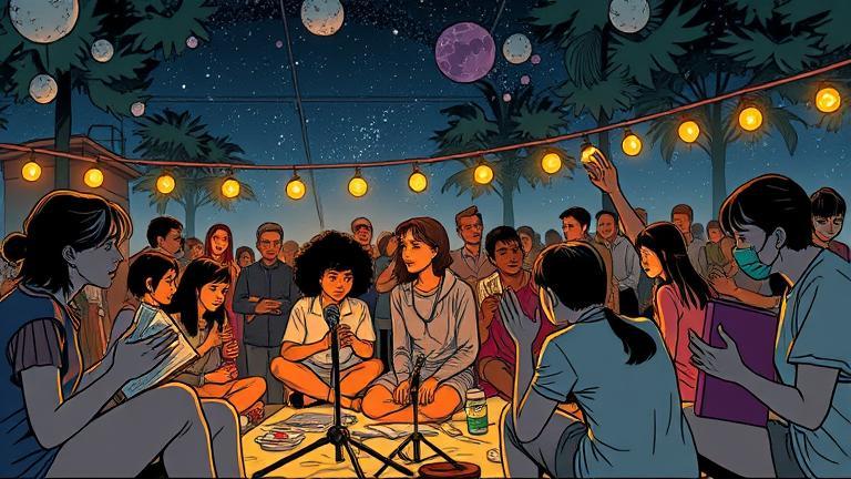 As the day turned to evening, the group began organizing a series of events culminating in a special ‘Voices Under the Moon’ night. The air was buzzing with creative energy, and Jason volunteered to design the promotional material while Rachel coordinated social media campaigns. They rallied as they scattered the flyers throughout the neighborhood, a testament to their collaborative spirit.