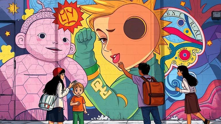 The friends assembled around the mural, vibrant colors and brush strokes exemplifying their combined journeys. Just before the unveiling, Mia called for silence.
