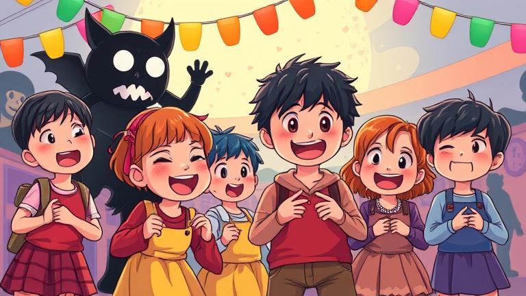 As the festival transformed into a swirling tapestry of colors, a new character emerged from the crowd. Leo, a tall boy known for his storytelling, approached the group with twinkling eyes. ‘What if our shadows had tales to tell? Let’s give them voices!’ he suggested enthusiastically.