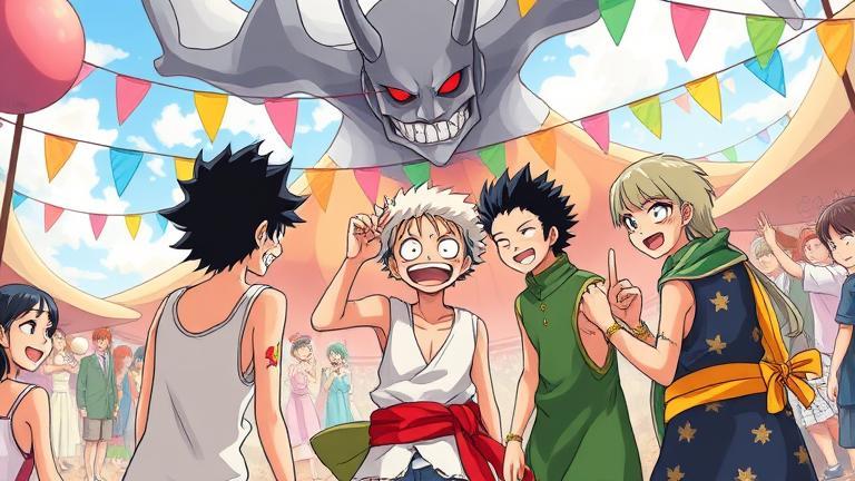 The sun dipped lower, casting golden hues on the horizon, when a sudden chill cut through the festive warmth. A cloaked figure emerged, dark and menacing, contrasting sharply against the festival’s vibrant backdrop. The laughter faded, replaced by an echoing gasp; disbelief spread like wildfire. ‘What do you want?’ Zoro growled, fists balled tightly, adrenaline kicking in. The figure held up a scroll, its aura crackling with sinister energy. ‘You believe joy will shield you from despair? I aim to extinguish it!’