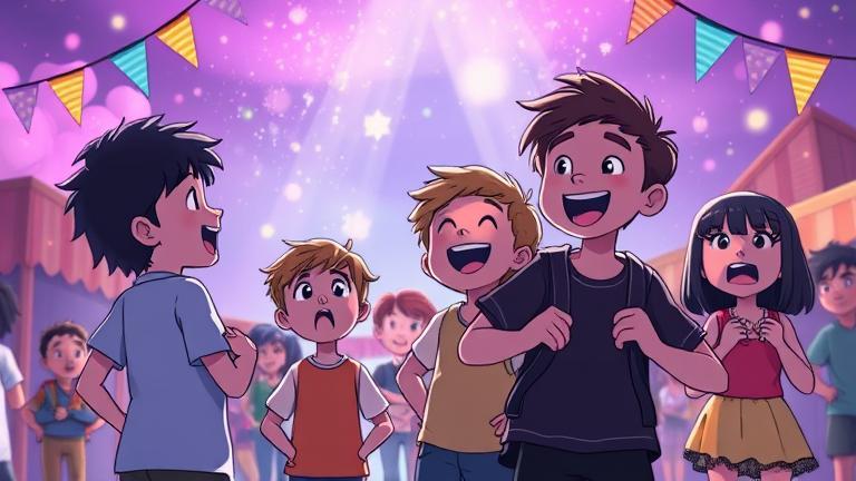 Robin and Chase spun around recounting what had just happened, promising a festival theme of ‘Joy Unleashed’ next year. Mikey popped another balloon, cheering animatedly, ‘Let’s make this moment last!’ The stars sparkled above; their shimmering eyes reflected unity, hope, and overcoming adversity together — an iridescent reminder moment worth repeating. Amidst vibrant forms of merriment and connection, the festival blossomed into an incredible recognition of community and defiance against darkness. Each laugh, shred of cake, and fleeting moment turned into a pathway woven not just for today but forever encasing in their shared tapestry of camaraderie, high hopes, and unyielding cheer. The world felt renewed and waiting for their next adventure, one that promised even brighter beginnings.