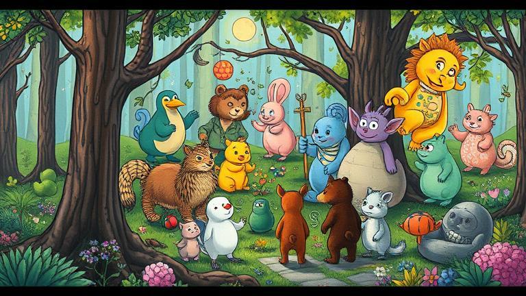 In the heart of the forest, under the canopy of stars, stories birthed new friendships, painted eternally on the vibrant canvas, where colors intertwined like their hearts.
