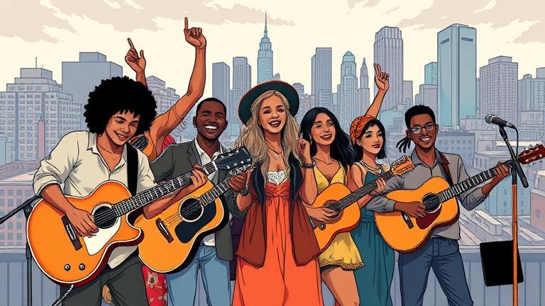 As the sun dipped below the skyline of the new city, Maya felt an electric anticipation buzz through her veins. The United Notes had traveled beyond their familiar town, ready to share their message of hope and unity through music. Setup for their makeshift stage was underway, and vibrant energy filled the air as people began to gather. With each strum of Jonas’ guitar, the atmosphere changed, thick with curiosity and expectation. ‘We can do this,’ Maya thought, remembering the faces of all who had joined them on this journey.